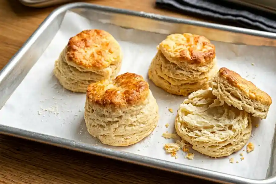 Flaky biscuits require cold butter and gentle folding of the dough to create layers.